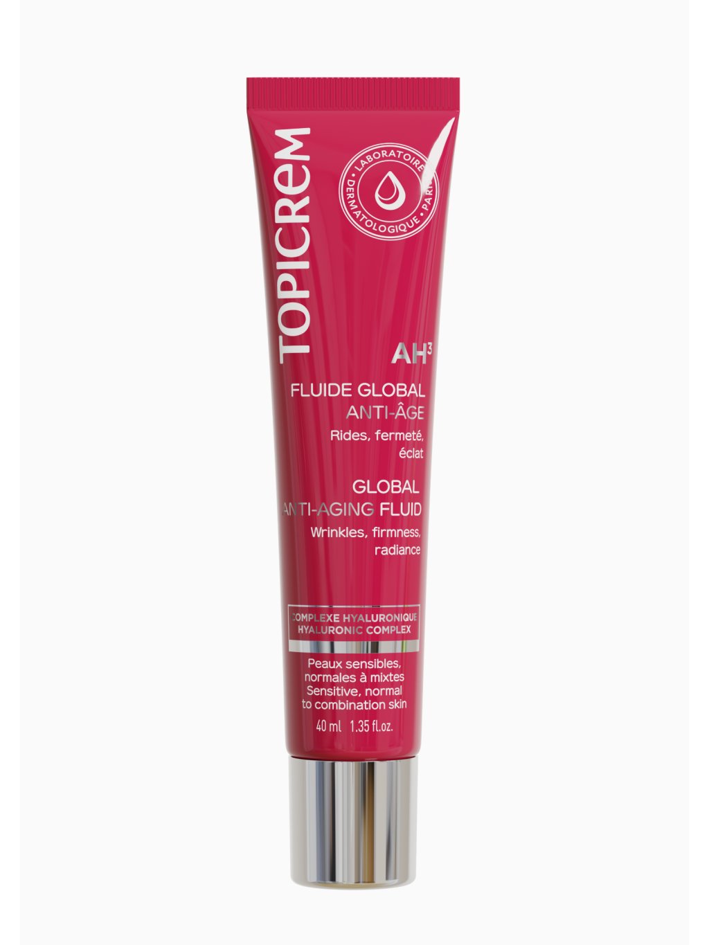 AH3 GLOBAL FLUID PROTI VRÁSKÁM - Unikátní péče proti prvním známkám stárnutí pleti. Aktivní ingredience a inovativní složení tvořené 3 typy kyseliny hyaluronové, vitamíny C, E a B3 zmírňuje výrazné vrásky, odstraňuje známky únavy, zpevňuje a regeneruje pleť. Lehká textura s jemnou vůní černého rybízu, pomerančového květu a vanilky zanechává pleť 24 hodin hydratovanou, hebkou a svěží. AH3 fluid proti vráskám je vhodný i na citlivou pleť, normální nebo kombinovanou pleť, neucpává póry a je testován pod dermatologickou a oftalmologickou kontrolou na citlivé pleti.